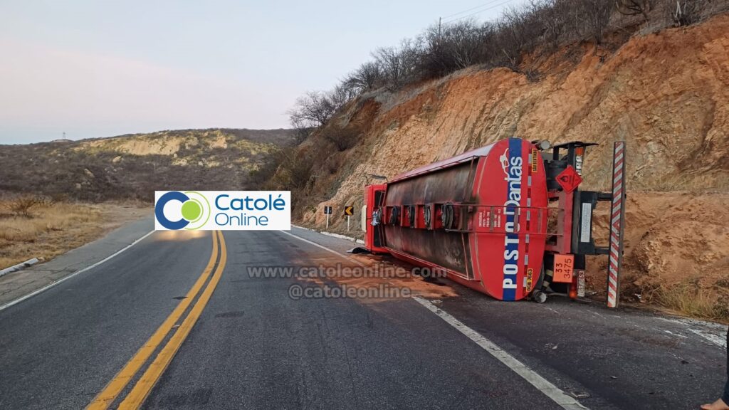 Um caminhão-tanque tombou na madrugada desta quinta-feira (23), na serra de Santa Luzia, no Sertão. O tombamento aconteceu no km 278, da BR-230, sentido Campina Grande.