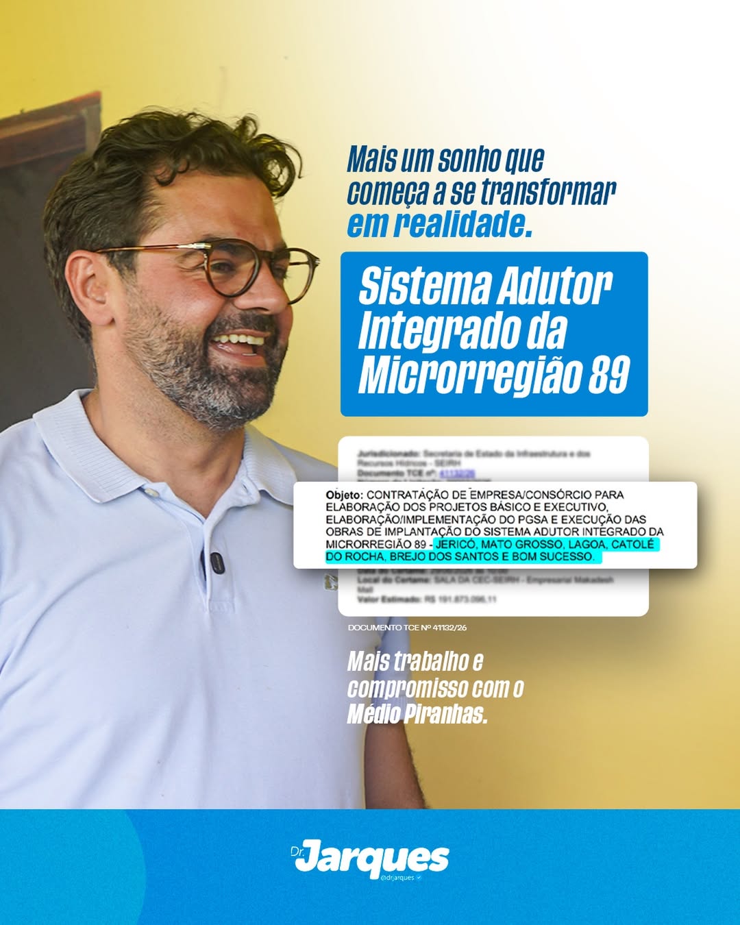 Em entrevista ao programa Olho Vivo, da TV e Rede Diário, nesta quinta-feira (9), o Dr. Jarques, pré-candidato a deputado estadual, não escondeu o entusiasmo com o anúncio. Para o líder político, a publicação do edital não é apenas um ato administrativo, mas a concretização de uma luta política em favor do Sertão.